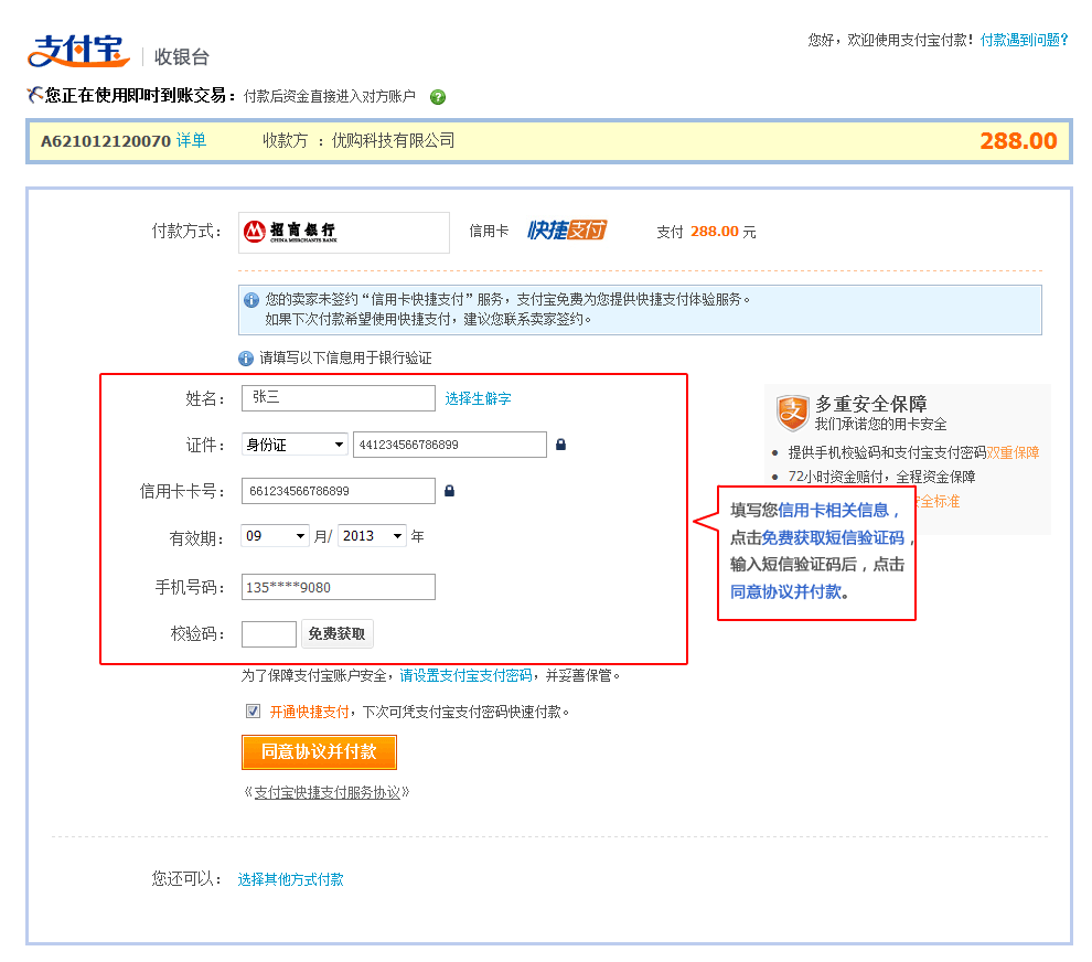 > 快捷支付演示