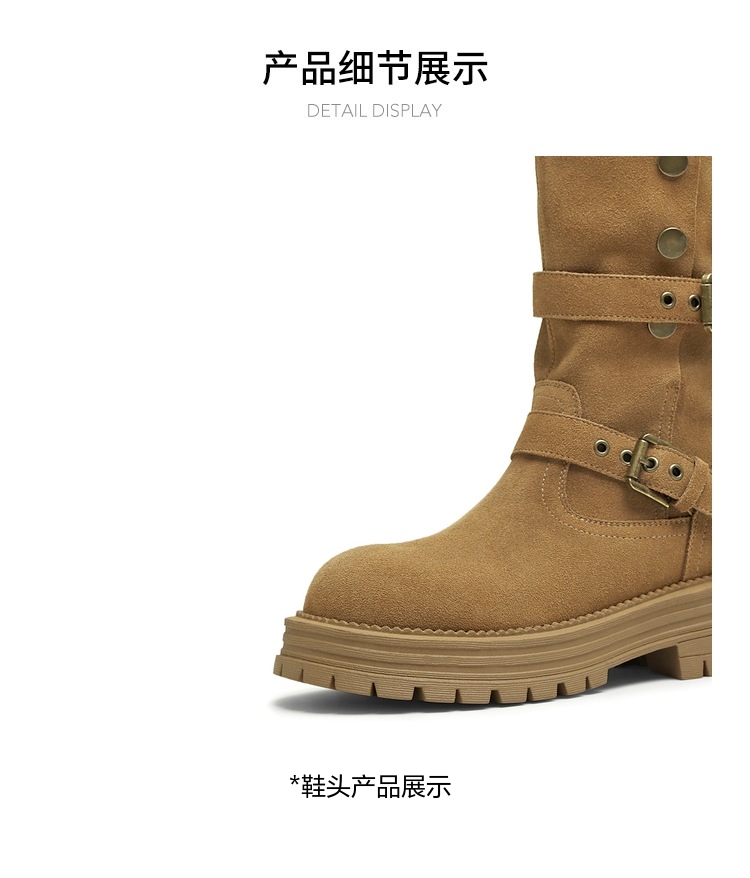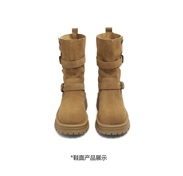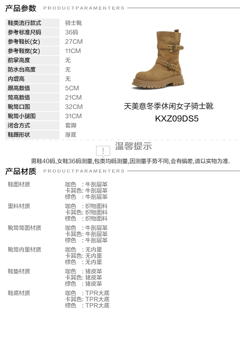 | 靴筒口围:32CM | 配跟:无 | 上市时间:2025年冬季 | 鞋类流行款式:骑士靴 | 鞋头款式:圆头 |